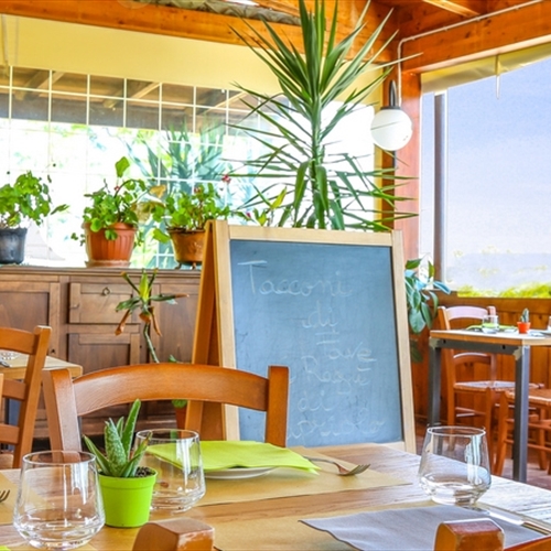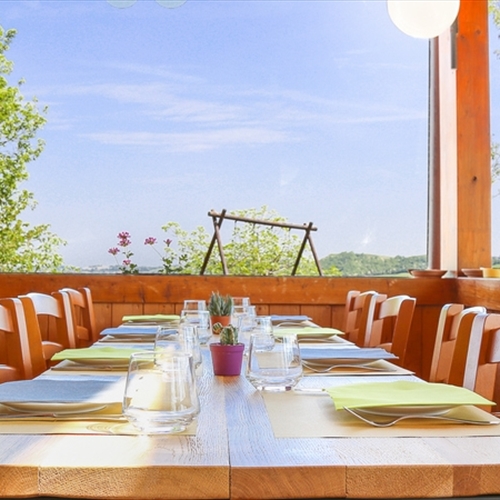 In inverno, la sala interna vi scalderà il cuore, con mattoni e travi a vista, tavoli in rovere e ferro battuto fatti da artigiani locali. In estate, invece, potrete godere di un bagno di verde e di una bella aria fresca seduti comodamente nella nostra veranda panoramica.